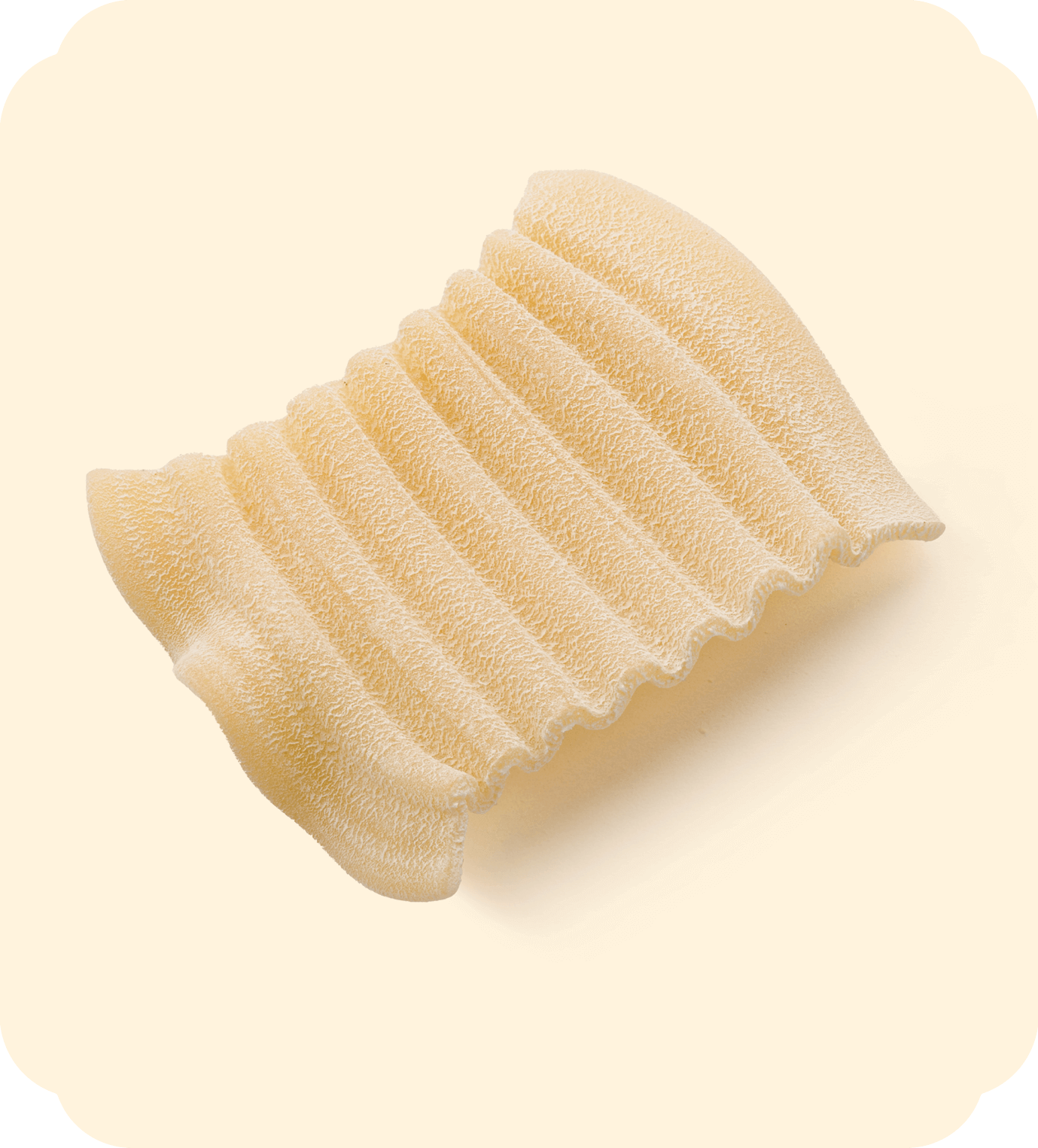 La semola di grano duro si unisce all’acqua pura dei Monti Lattari fino a ottenere un impasto omogeneo, elastico e consistente. L’impasto lento permette di preservare le qualità della semola, mantenendo colore, profumo e valori nutrizionali.